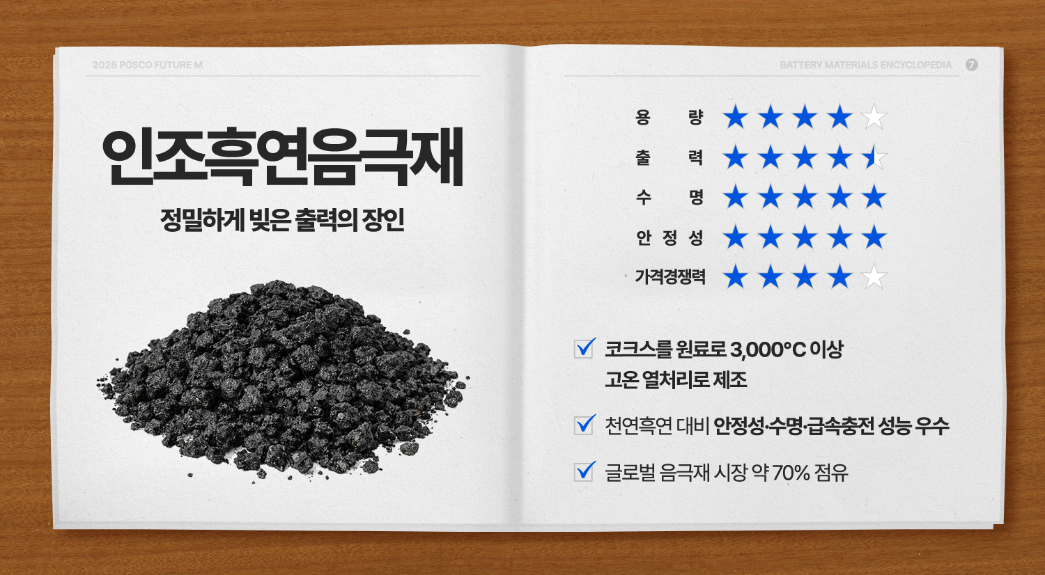 ○ 인조흑연 음극재 – “정밀하게 빚은 출력의 장인”