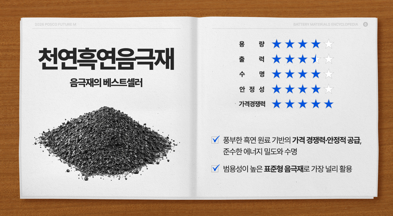 천연흑연 음극재는 가장 널리 쓰이는 표준형 소재로, 지구상에