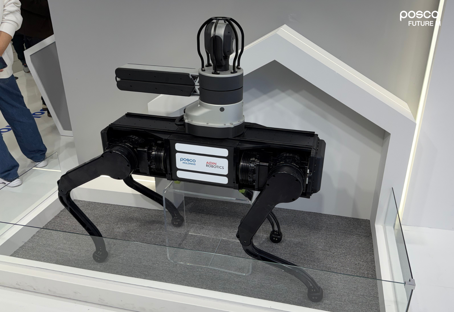 이곳에서 성사원의 흥미를 이끈 전시물은 바로 4족 보행 로봇이었습니다. 4족 보행 로봇은 제철소 내 작업자가 직접 하게 되는 고위험 작업을 로봇이 대신해 안전한 작업 환경을 만들기 위해 포스코그룹이 개발한 솔루션인데요. 이 로봇은 현재 광양 제철소 등 일부 현장에서 그 임무를 충실히 수행하고 있다고 합니다.