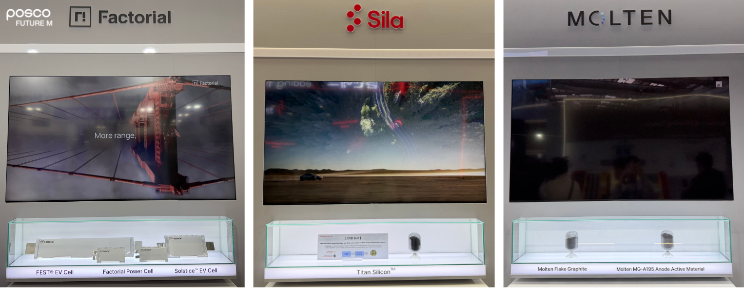 우수한 에너지 밀도와 충전 성능 뿐만 아니라 높은 안정성으로 차세대 배터리 산업의 게임체인저로 주목받고 있는 전고체 배터리 개발을 위해 협력하고 있는 미국의 팩토리얼(Factorial)사, 차세대 실리콘 음극재 제조 기술 협업을 진행하고 있는 미국의 실라(Sila)사, 음극재 원료 공급망 다변화를 위해 메탄에서 흑연을 추출하는 기술을 공동 연구하고 있는 미국의 몰튼(Molten)사 등 혁신 기업들과의 콜라보레이션을 살펴볼 수 있었습니다.