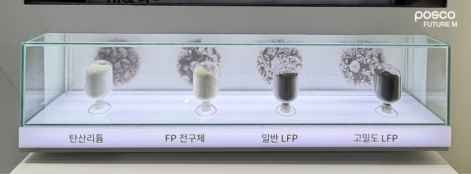 그 중 LFP 양극재는 저렴한 가격과 높은 안정성, 긴 수명 등으로 ESS 시장에서 가장 주목받고 있습니다. 이러한 트렌드에 발맞춰 포스코퓨처엠도 LFP 양극재 샘플을 전시하고 개발ㆍ생산계획을 소개했는데요.