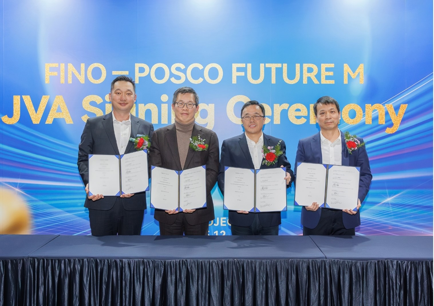 포스코퓨처엠은 CNGR 및 CNGR의 한국 자회사인 피노(FINO)와 LFP(리튬·인산·철) 양극재 합작투자계약(JVA, Joint Venture Agreement)을 체결했다. 23일 경기도 안양시 피노 사옥에서 열린 합작투자계약 체결 행사에는 포스코퓨처엠 윤태일 에너지소재마케팅본부장, CNGR 리우싱궈 부총재, 주종완 부총재, 피노 김동환 대표, 씨앤피신소재테크놀로지 따이주푸 대표이사 등이 참석했다.