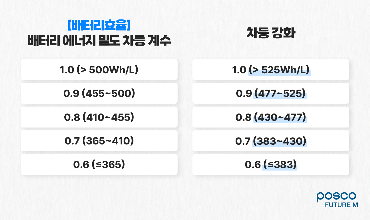 한편, 배터리 에너지 밀도에 따른 전기차 보조금 차등은 강화됐습니다. 이제는 1등급 기준을 기존 500Wh/L에서 525Wh/L로 늘렸고, 2등급 이하 기준들도 비슷한 정도로 상향조정 됐는데요. 즉, 주행거리가 길고 성능이 우수한 배터리를 탑재한 차량이 보조금을 더 받게 됩니다.