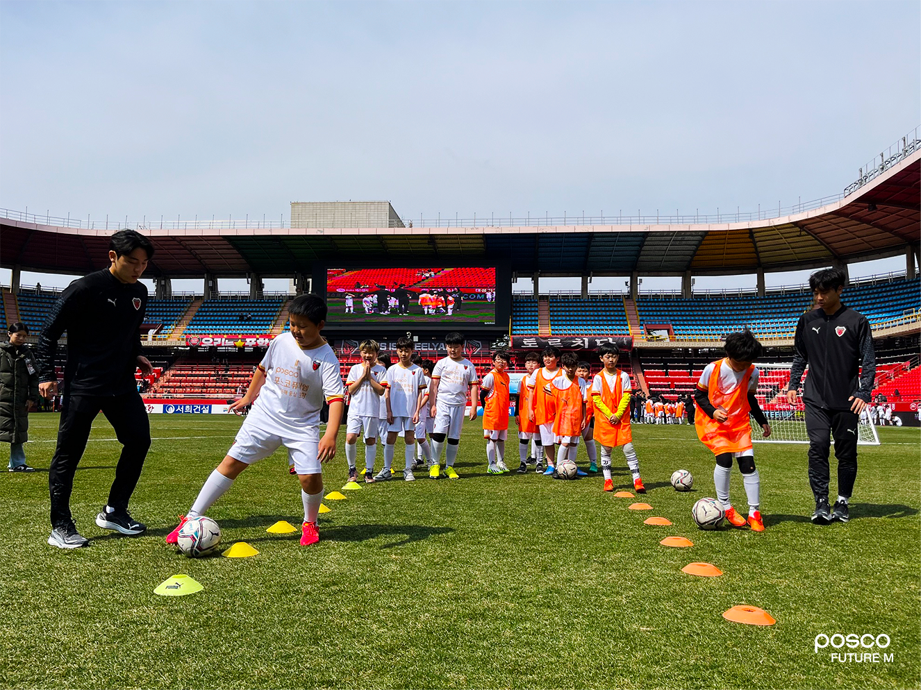 포스코퓨처엠이 포항스틸러스와 함께 미래세대 꿈나무인 어린이들을 위해 평생 기억에 남을 특별한 축구교실을 열었습니다.
