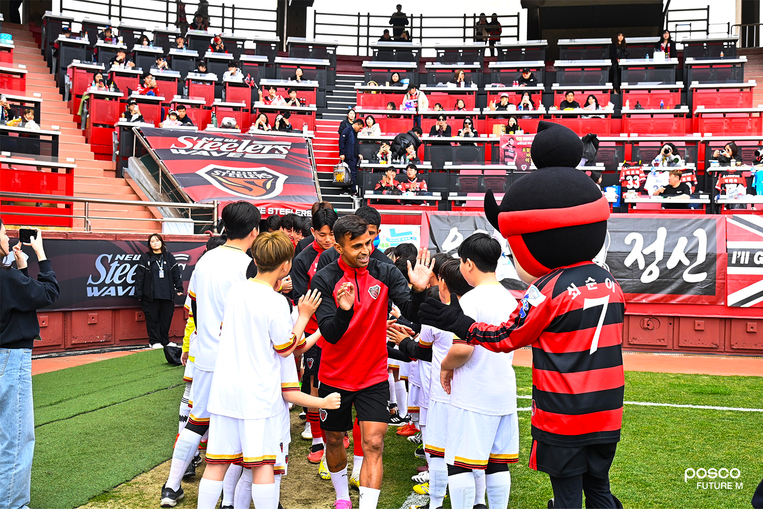 3월 17일에는 포항스틸러스의 초청으로 축구교실 참여 어린이들이 포항스틸러스의 홈 구장인 포항스틸야드에 방문했습니다. 이날 행사는 포항스틸러스와 광주FC의 K리그 3라운드 홈경기에 앞서 진행되었습니다.