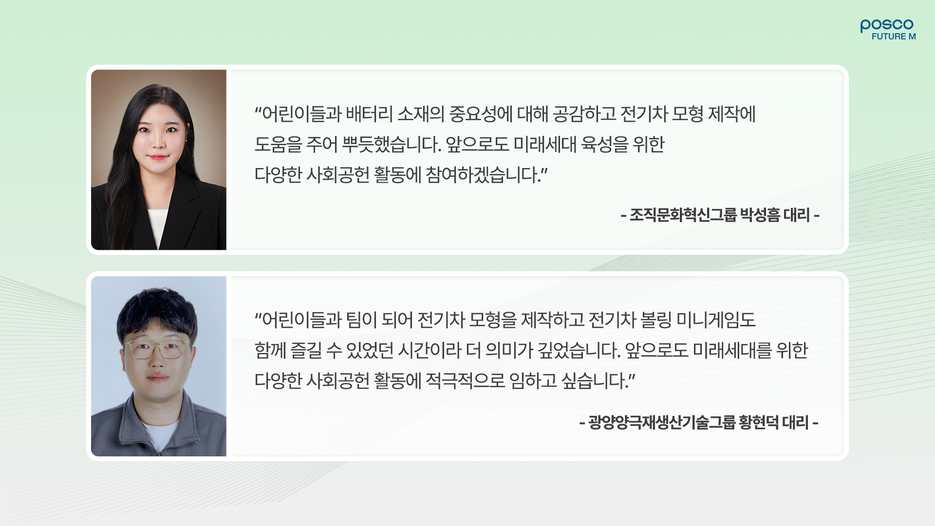 포스코퓨처엠은 앞으로도 업의 전문성을 활용해 미래세대의 건강한 성장을 지원하고 선한 영향력을